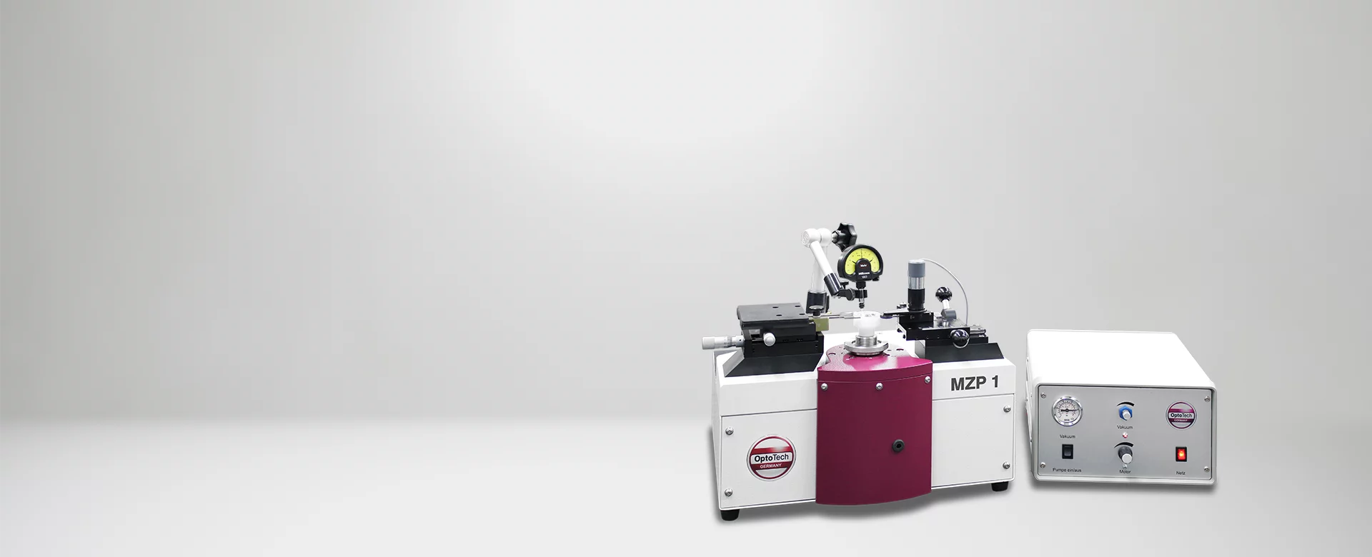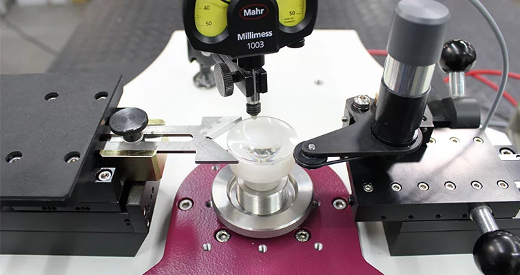 The mechanical centering testing unit MZP 1 excellently fits for easiest detection of centering errors of grinded optical components by using a measuring gauge.