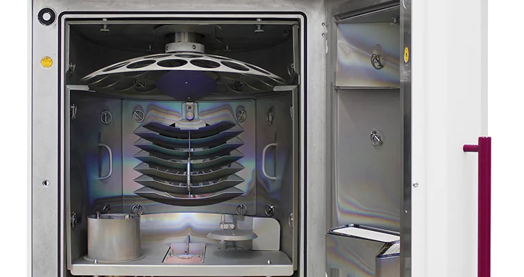 The OptoTech OAC-60F evaporation coater is used for the application of high quality thin films like antireflective (AR) coatings and other kinds of interference filters on optical components on a small scale. The OAC coating system is characterized by the product quality for which OptoTech is known, ease of use, and exceptional reliability in the daily production operation.