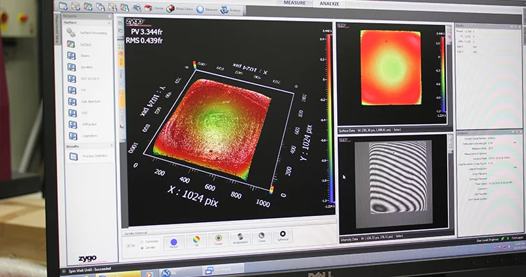 The workshop interferometer OWI 150 PLAN is the ideal measurement system for testing plano single surfaces or lenses produced as multi blocks.